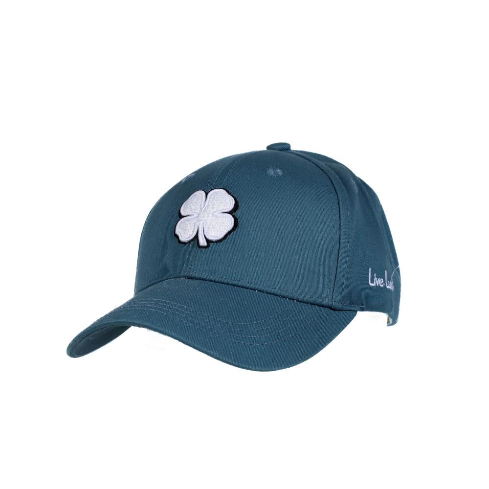 كاب بلاك كلوفر قماش ازرق بترولي بتطريز ابيض مع اسود