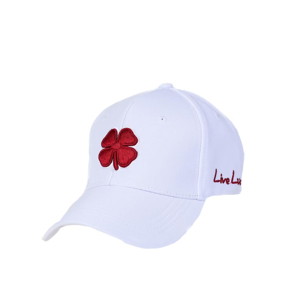 كاب بلاك كلوفر مغلق كامل قماش ابيض بتطريز احمر
