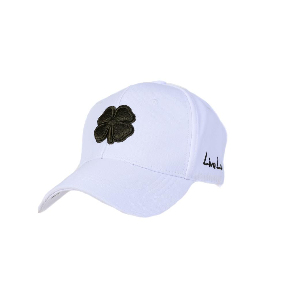 كاب بلاك كلوفر مغلق كامل قماش ابيض بتطريز اسود